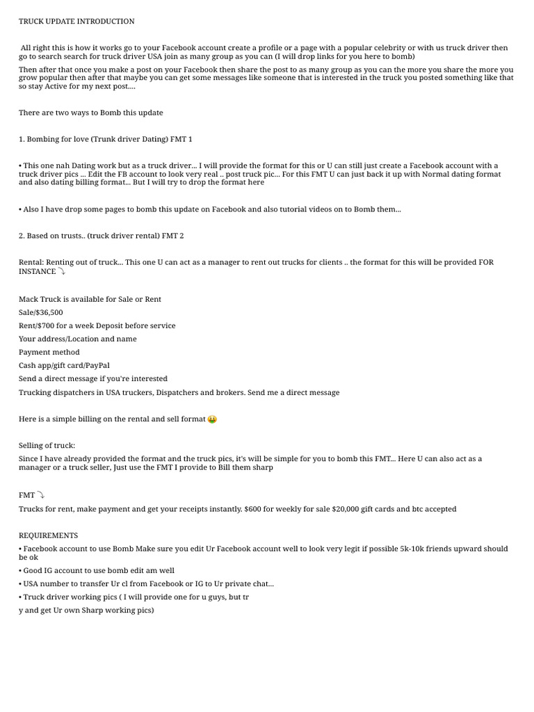 truck driver pics ... Edit the FB account to look very real .. post truck pic... For this FMT U can just back it up with Normal dating format