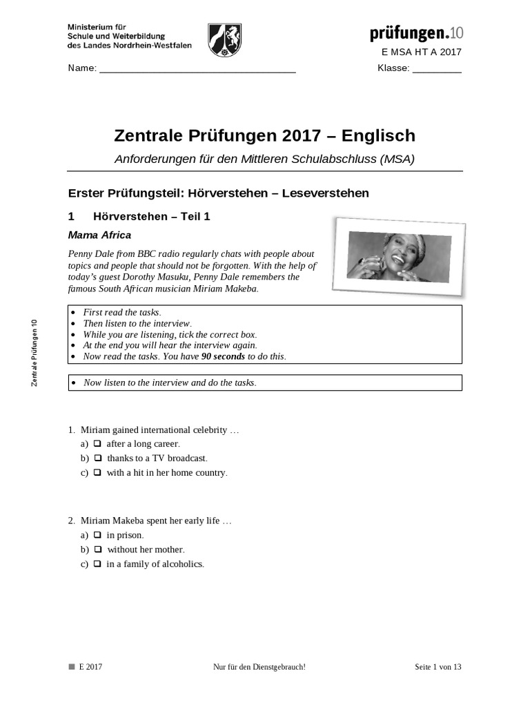 Zentrale Prüfungen 10