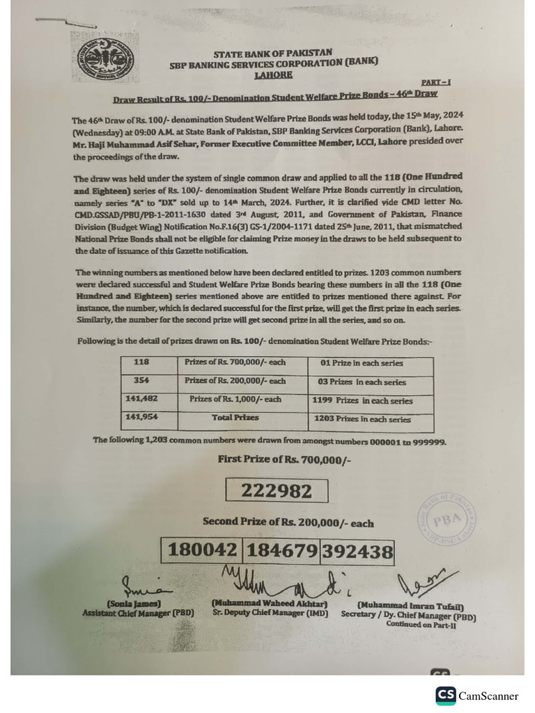 100 Prize bond draw