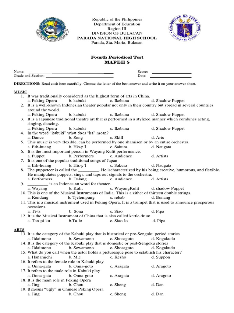 DIRECTIONS: Read each item carefully. Choose the letter of the best answer and write it on your answer sheet.