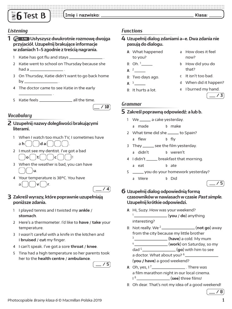 2 Katie went to school on Thursday because she B: Oh. 1 b How did you do