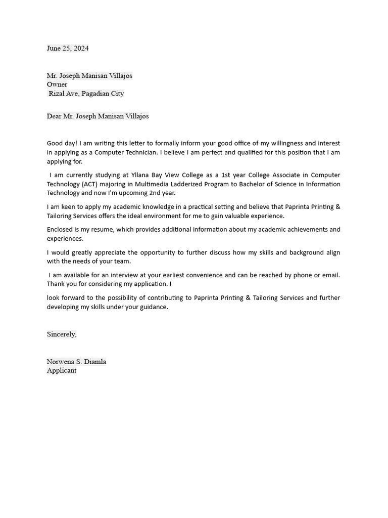 in applying as a Computer Technician. I believe I am perfect and qualified for this position that I am