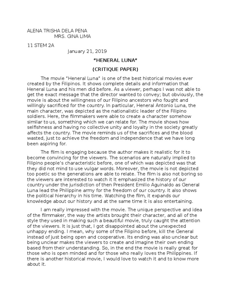 "Heneral Luna" (Critique Paper)