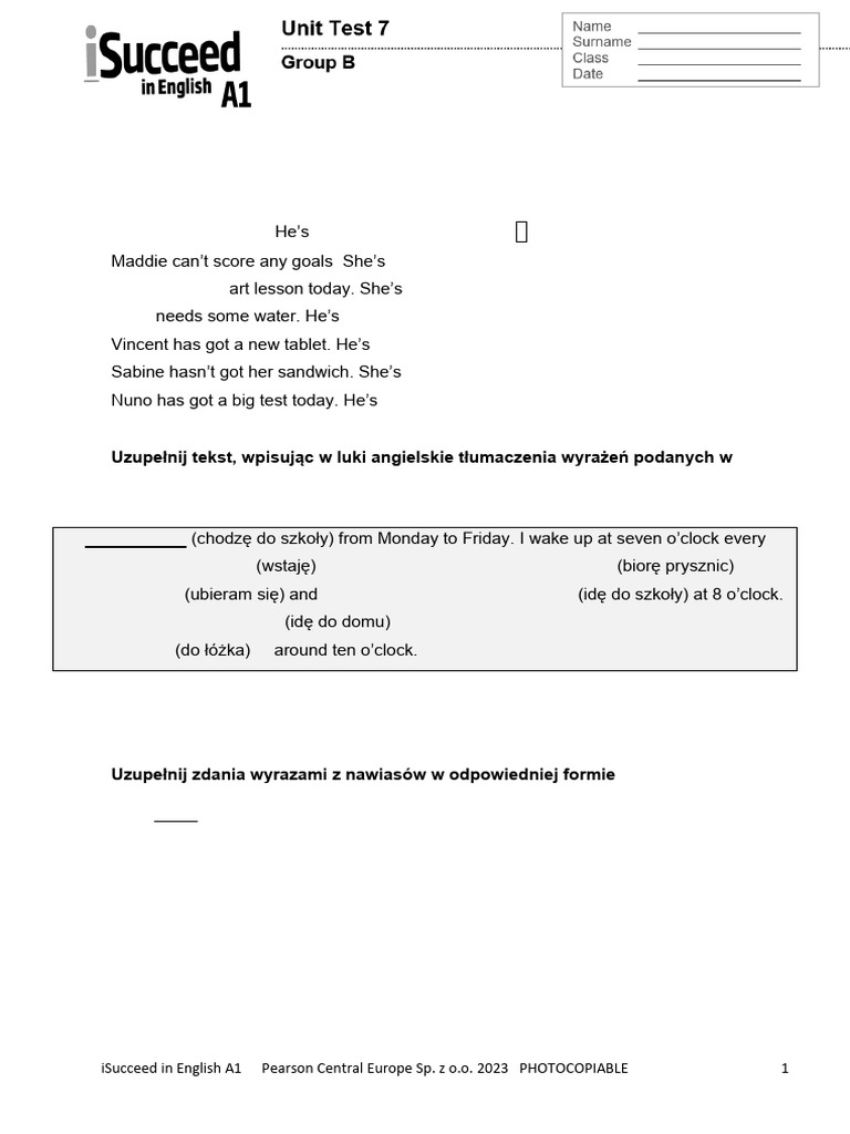 iSucceed in English A1 Pearson Central Europe Sp. z o.o. 2023 PHOTOCOPIABLE 4