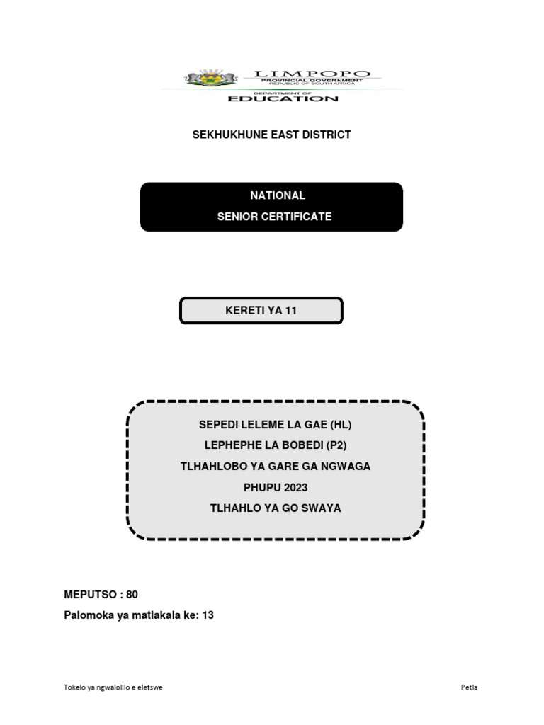 Sepedi Leleme la Gae / P2 9 LimpopoDoE/Phupu 2023 Kreiti ya 12