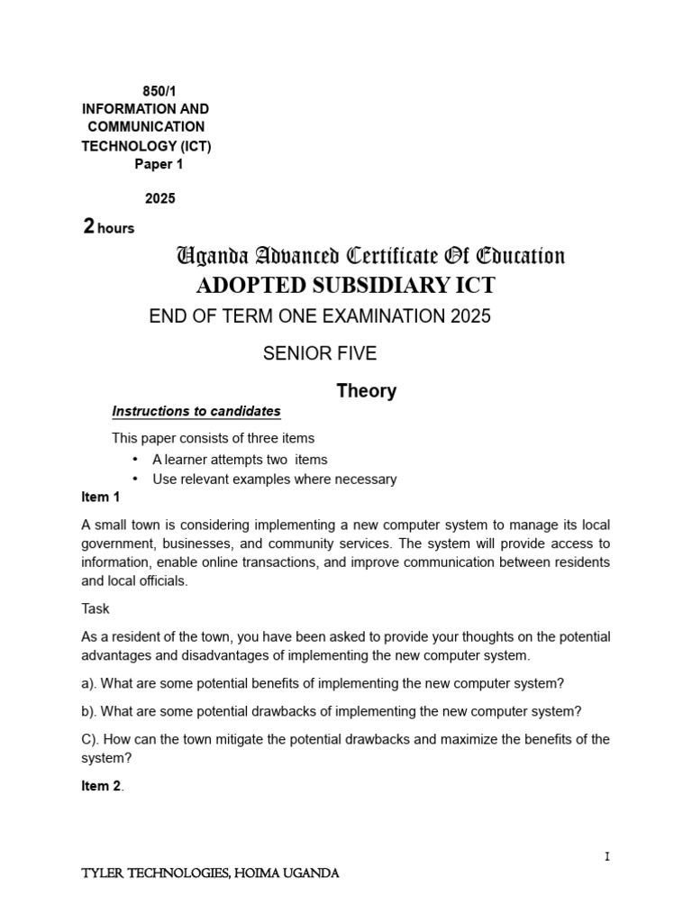 s.5 Ict End of Term 1 2025 by Tyler Fred