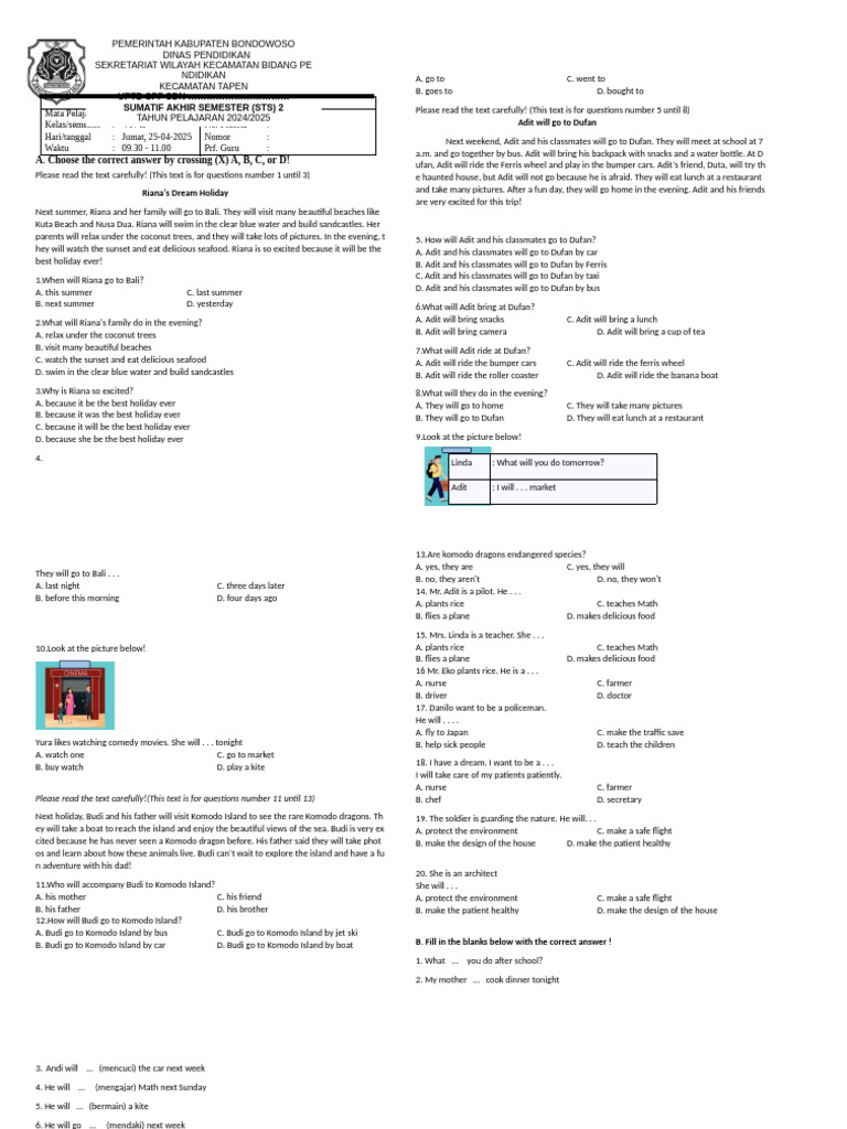 SUMATIF AKHIR SEMESTER (STS) 2 Please read the text carefully! (This text is for questions number 5 until 8)
